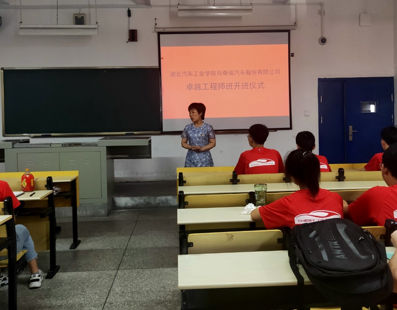 开班仪式上,冯武堂提出,卓越工程师需要全面提升综合能力,青春是用来拼搏的!奇瑞公司将为同学们量身定制专业课程和生产实习,希望同学们努力学习、承担责任、收获梦想!张红霞讲到湖北汽院成立于1972年,从无到有、从有到优;奇瑞汽车是中国民族企业的翘楚,也是从无到有、从有到优。首届奇瑞汽车卓越工程师班是新的起点,希望同学们成为奇瑞卓越工程师班从无到有、从有到优的示范。