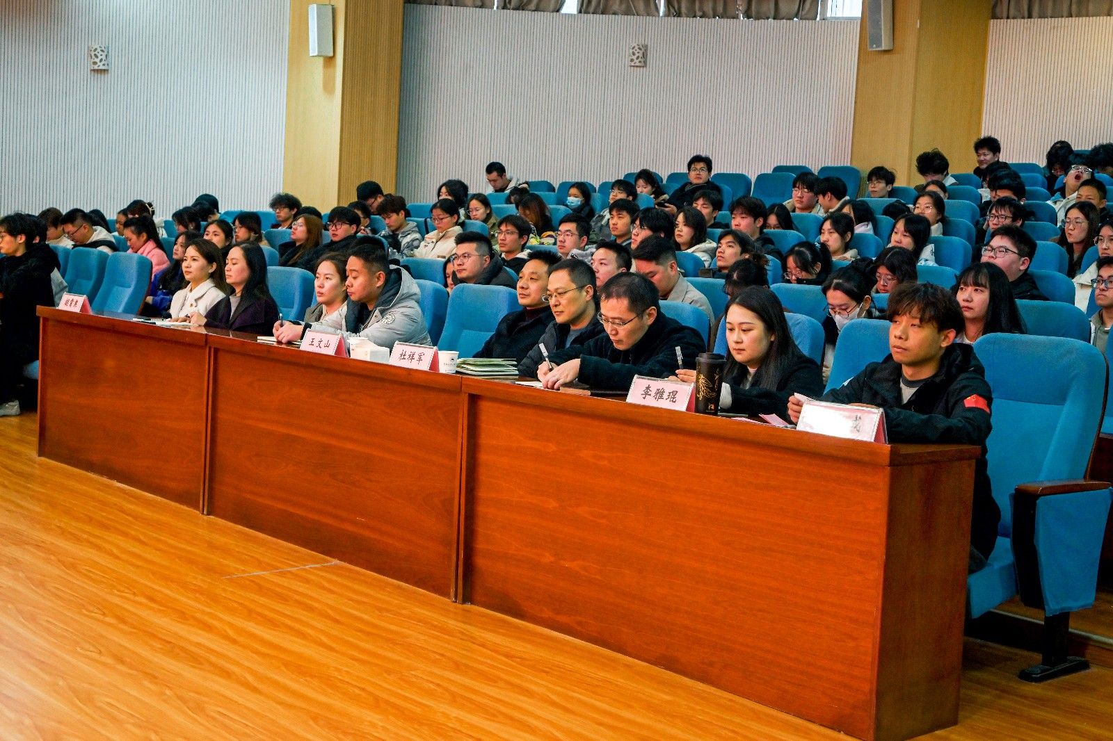 省委宣讲团成员、校团委副书记胡霄寒强调党的二十届四中全会精神是青年的“行动指南”,青年要以“十四五”发展成就为基石争做新质生产力追求者,在各领域用青春引擎驱动梦想。团市委宣讲团成员李雅琨通过两件发生在学生身边、扎根在祖国大地的志愿故事,感召青年扎根基层、服务群众,用志愿服务的热忱,为中国式现代化建设注入青春动能。团省委“00”后宣讲团成员李志成则从他在东风HUAT车队完成各项挑战出发,分享他对“十四五”规划中“培育高素质技术技能人才队伍”的理解。