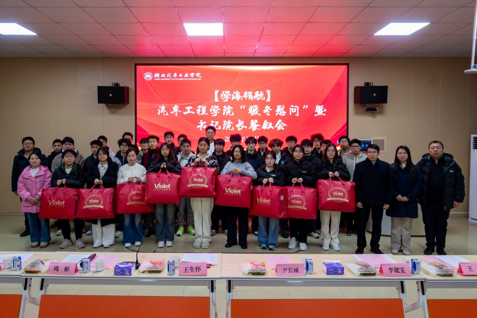 本网讯(文/王裕 图/张佳麒)为深入贯彻国家资助政策,切实助力家庭经济困难学子温暖过冬、安心就学,12月12日中午,汽车工程学院在汽车综合实验楼204职工之家开展12月“暖冬慰问”暨书记院长餐叙会。校党委常委、副院长王生怀参加活动。