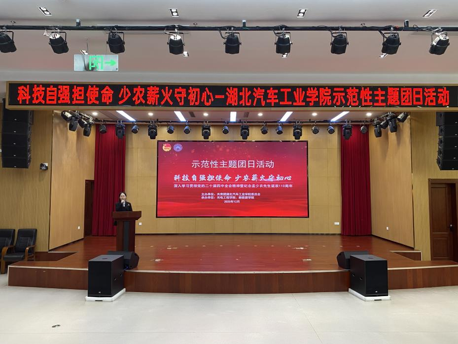 十堰市委宣讲团成员、马克思主义学院刘明辉深入解读了党的二十届四中全会精神,他重点阐述了“十五五”规划、中国式现代化与科技自立自强对青年的时代要求。科普志愿服务队带来了情景剧《科普志愿行:从社区课堂到科技强国梦》。湖北省五一劳动奖章获得者曹名磊老师与全国光电设计竞赛获奖学生代表杨志广,分别结合科研教学与竞赛经历,分享了传承孟少农精神、勇攀科技高峰的实践感悟。
