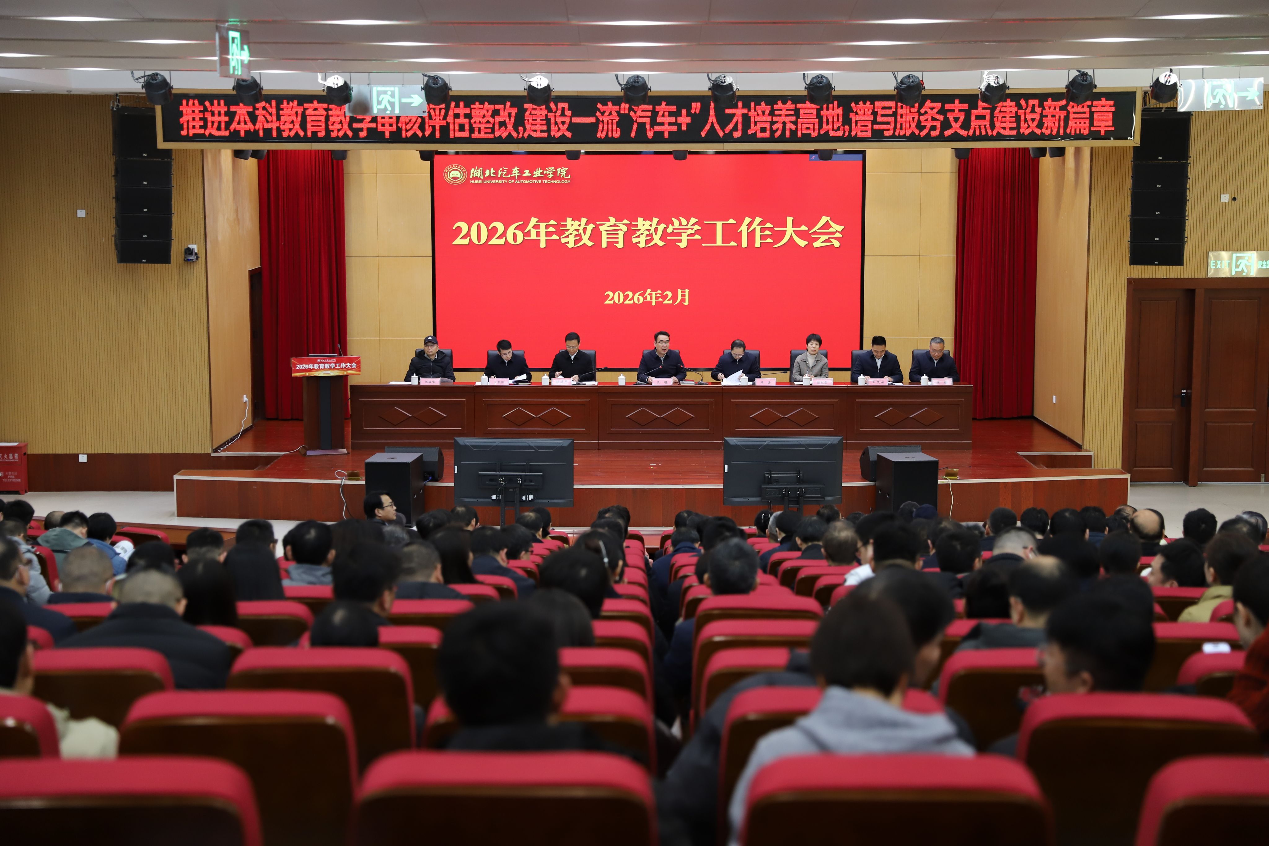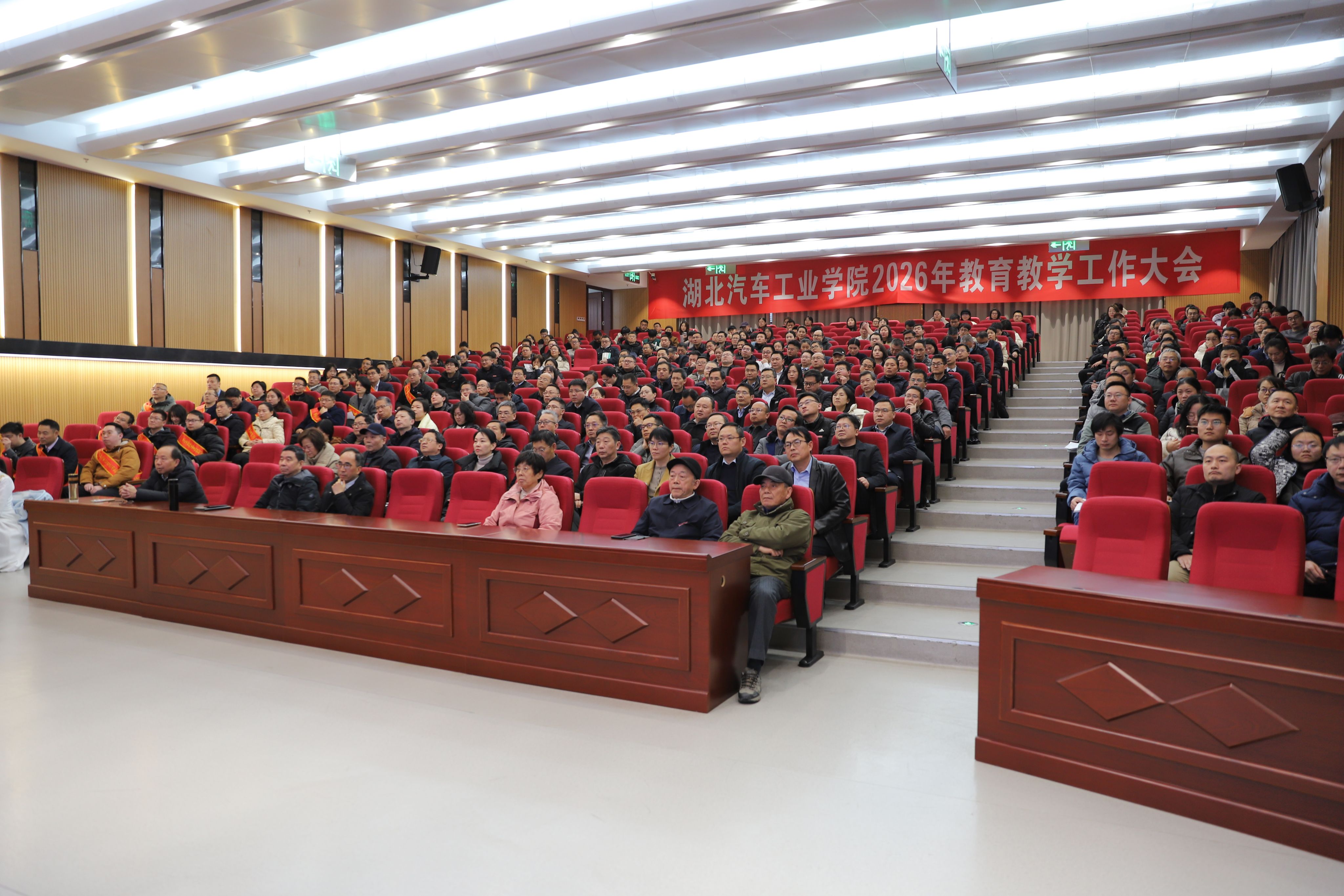 本网讯(文 徐正凯/图 邓玉洁)2月27日至28日,学校聚焦2026年教育教学工作,以“推进本科教育教学审核评估整改,建设一流“汽车+”人才培养高地,谱写服务支点建设新篇章”为主题,在产教大楼四楼报告厅召开“新春首会”2026年教育教学工作大会。全体校领导、教学督导组全体成员、全体中层领导干部,各二级学院专业及硕士学位点负责人、教师代表,教务处、研究生院等相关职能部门全体人员参会。