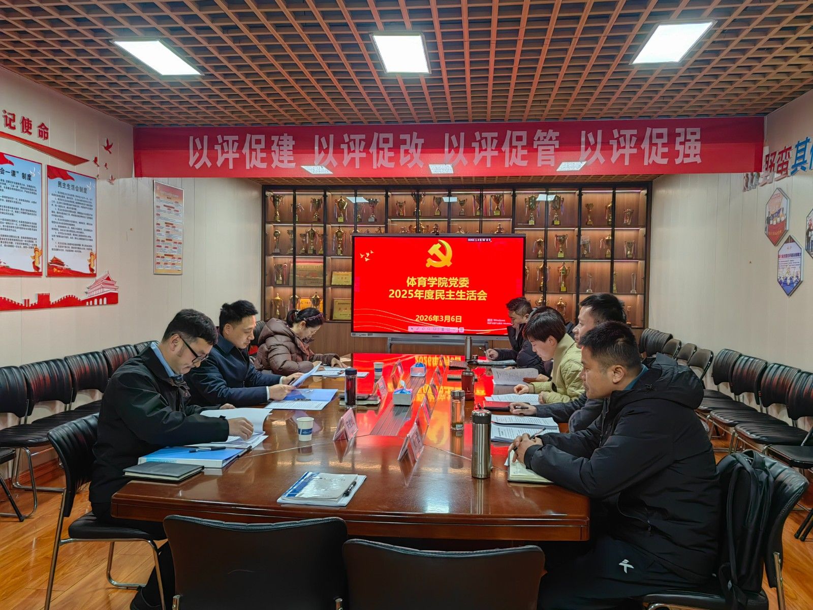 3月6日下午,体育学院党委在体育学院会议室召开2025年度民主生活会,校党委常委、第八督导组组长王文山带队到会指导并作点评讲话,学院党委领导班子参加民主生活会。学院党委书记熊玲主持会议。校第八督导组成员成继平、宋亚威到会指导。