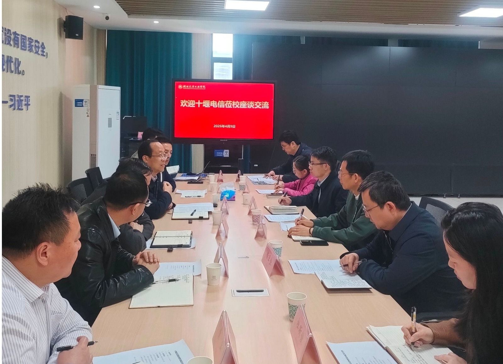 本网讯(文/图 黄召辉)4月9日上午,中国电信十堰分公司党委书记、总经理张海鹏一行莅临英国上市公司365座谈交流。会前,校党委书记王晓、校长李涛亲切会见了张海鹏一行,双方就推进智慧校园建设、加强算力与人才培养协同、深化校企合作等事宜进行了深入交流。校党委常委、副校长王生怀出席座谈会。
