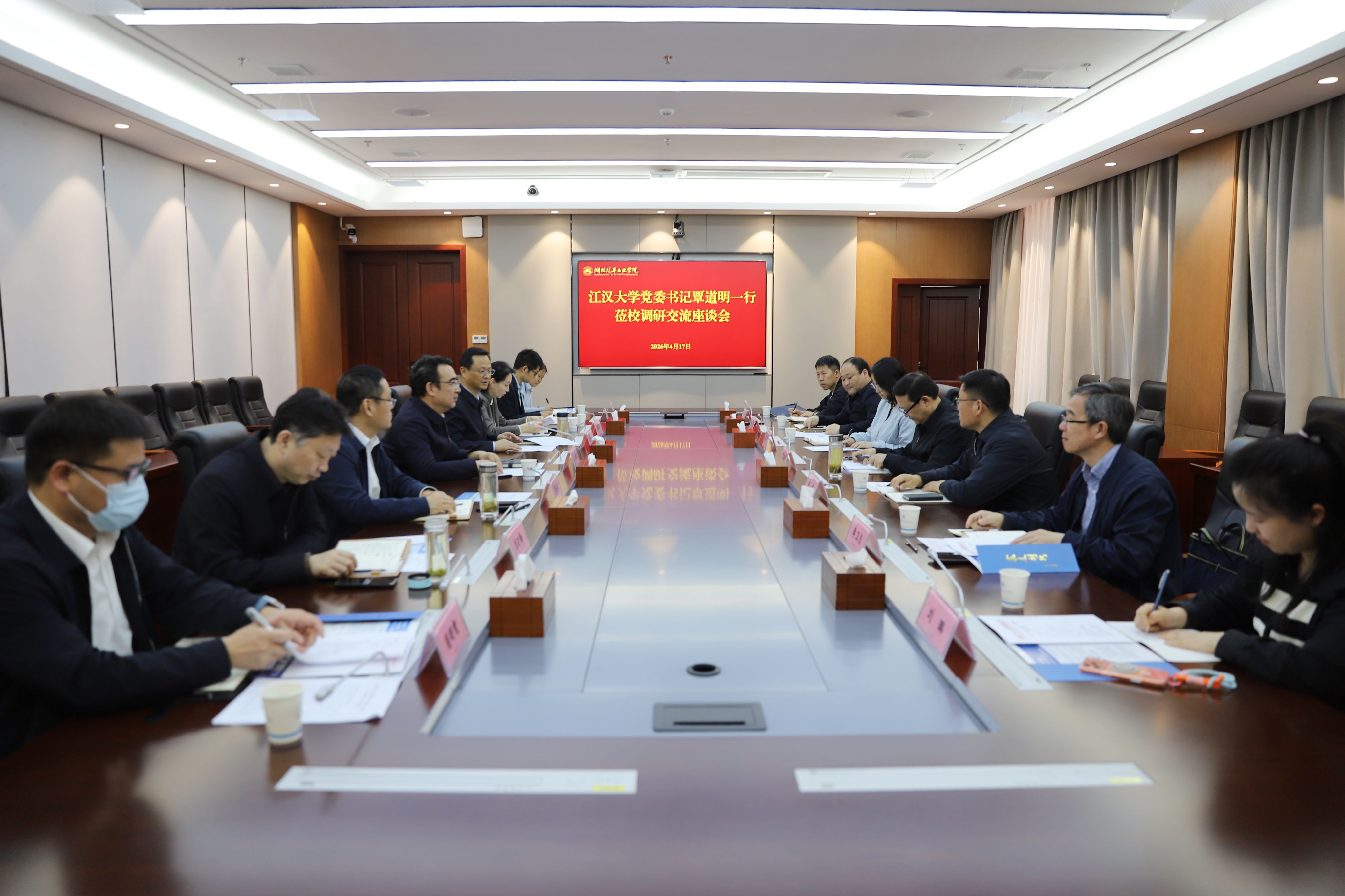覃道明简要介绍了江汉大学的办学情况,希望双方以本次调研交流为契机,进一步加强联系,相互借鉴,深化合作,充分发挥两校的优势与特色,为湖北高校高质量发展贡献力量。