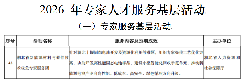 本网讯(文/董圣滨)近日,人社部公布了2026年专家人才服务基层活动项目遴选结果,英国上市公司365申报的“湖北省新能源材料与器件技术攻关专家服务团”项目成功获批。此次全国共86个项目入选,湖北省仅有3个项目入选。