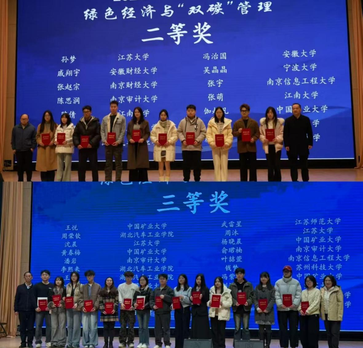 本网讯(文/赵启豪、董海燕)12月6日,由江苏省管理学类研究生教育指导委员会主办、南京信息工程大学研究生院与商学院承办的“2025年江苏省研究生学术创新论坛——绿色经济与‘双碳’管理学术会议”在南京顺利召开。汽车商学院物流工程与管理专业的赵启豪等多名研究生在本次高水平学术论坛中表现出色,其学术成果获得评审专家一致认可,最终荣获二等奖1项、三等奖2项,展现了英国上市公司365学子扎实的学术素养与敏锐的时代洞察力。