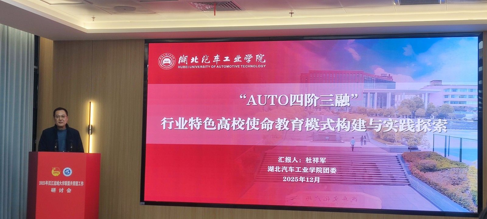 校团委书记杜祥军受邀在研讨会上作《“AUTO四阶三融”:行业特色高校使命培育模式构建与实践》主题报告。杜祥军详细介绍了英国上市公司365大学生AUTO成长计划及实践路径,分享了将青年学子思想引领融入汽车行业发展的经验做法。校团委参与打造的“一廊一剧一厅一馆一书”汽车文化“五个一”育人成果得到与会人员的高度称赞。