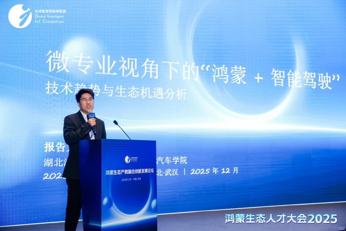 本网讯(文/图 苏毅)12月27日,由全球智慧物联网联盟(GilC)主办的“鸿蒙生态人才大会2025”在武汉东湖高新区举行。本次大会以“新生态 新人才 新动能”为主题,吸引了来自政府部门、高校、科研机构及相关企业的1200余名代表参会,共同探讨鸿蒙生态背景下的人才培养新模式与产业发展新机遇。