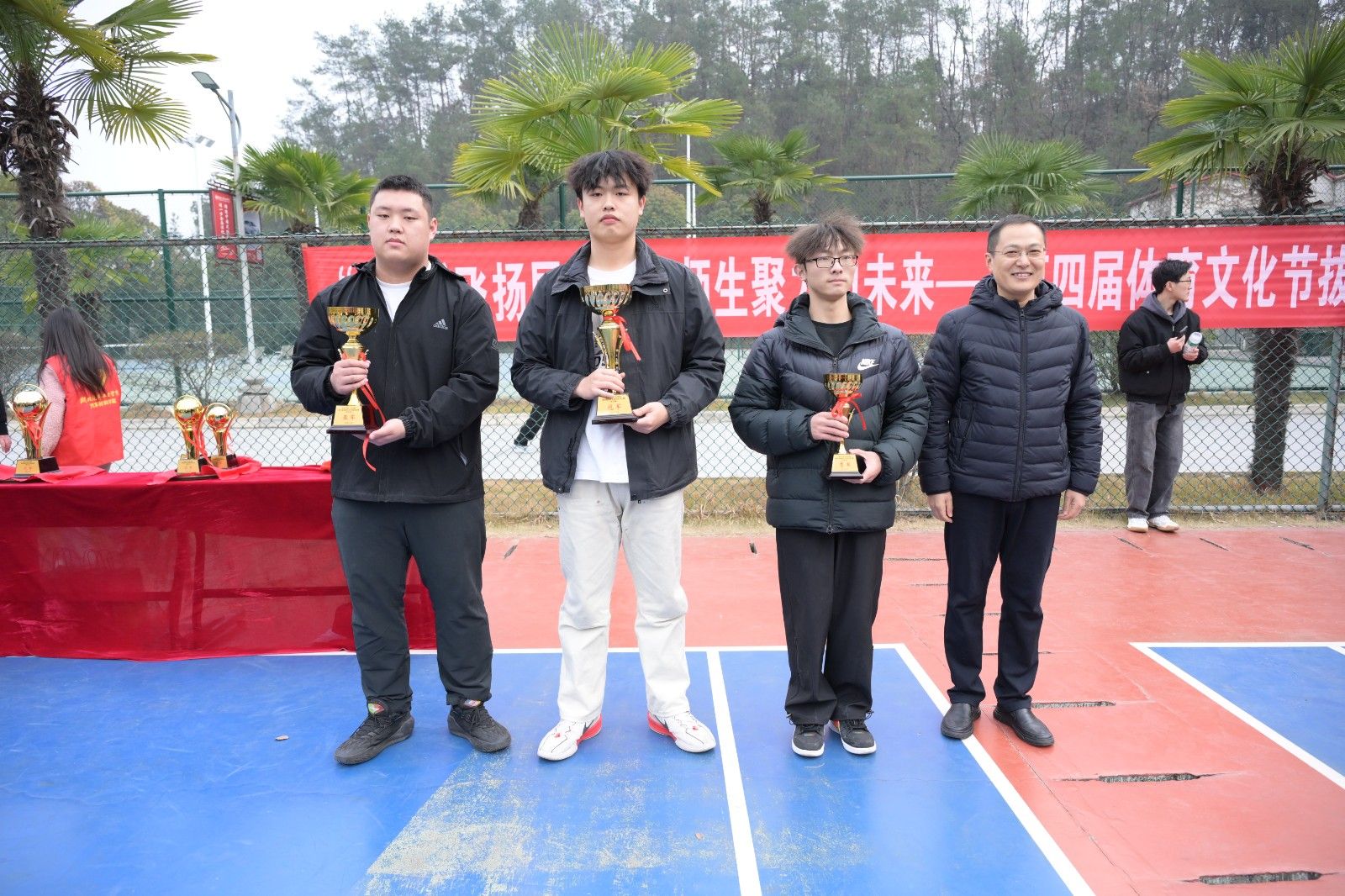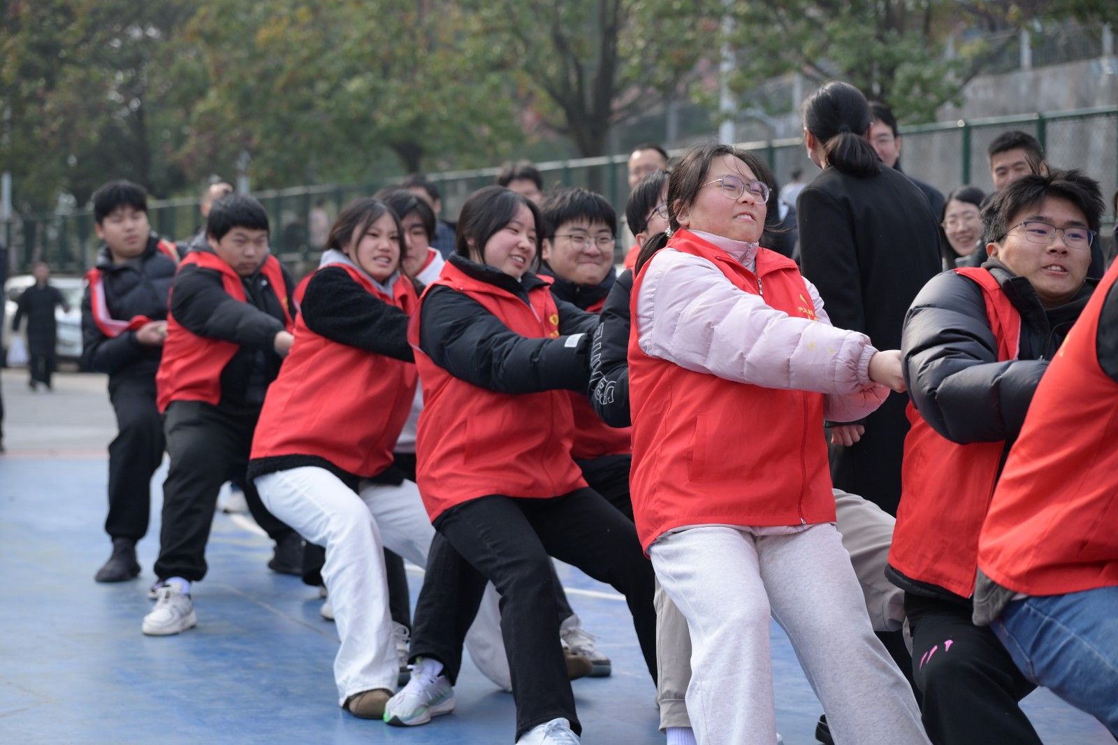 本网讯(文/图 骆无思)为丰富校园文化生活,凝聚师生奋进力量,12月30日,由校团委联合校工会、体育学院、汽车材料学院共同主办的“绳”采飞扬展风采,师生聚力向未来——第四届体育文化节拔河比赛在校篮球场圆满落幕。本次比赛分为学生组与教工组,吸引14支学生团队、8支教工团队同台竞技,上演了一场力量与协作的精彩对决。