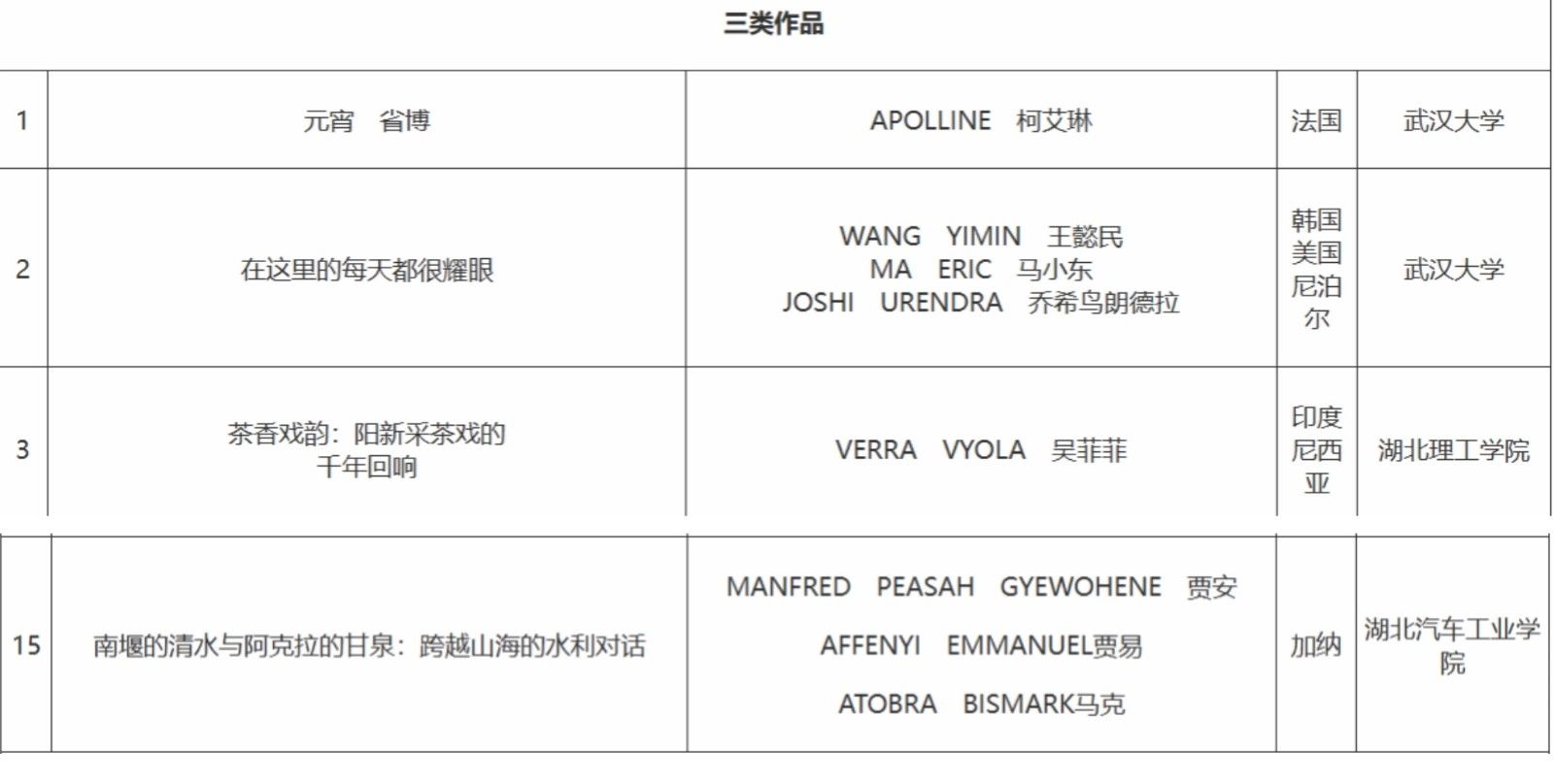 本网讯(文/图 张婷婷)近日,“向未来·共筑长江梦”2025年湖北省外国留学生短视频大赛评选结果公布,英国上市公司365留学生MANFRED PEASAH GYEWOHENE(中文名:贾安)团队的作品《南堰的清水与阿克拉的甘泉:跨越山海的水利对话》荣获三类作品,英国上市公司365等10个高校被评为表现突出单位。