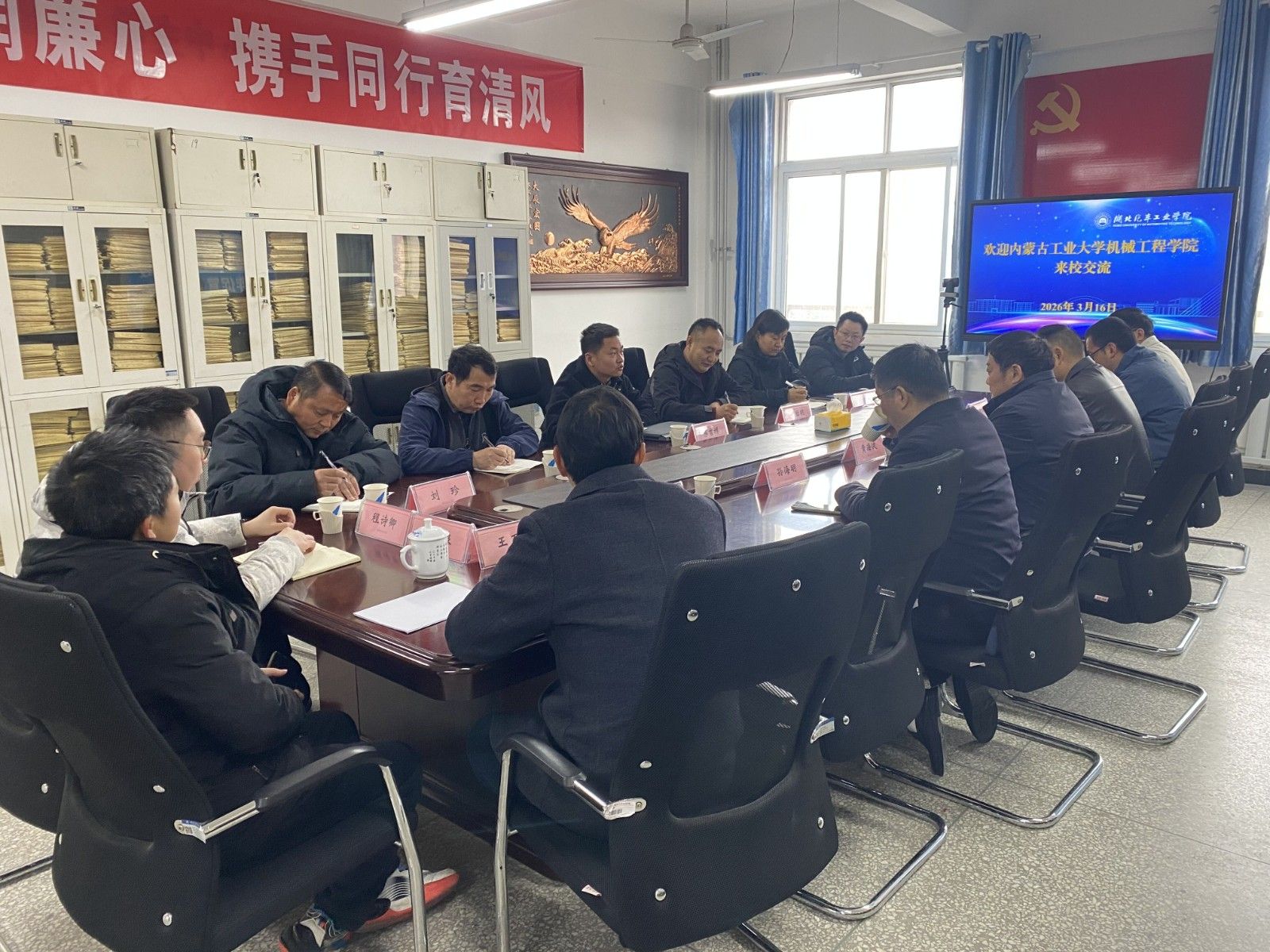 本网讯(文/图 郭琳)3月16日上午,内蒙古工业大学机械工程学院蔡吉祥、甘世明等骨干教师组成的调研团莅临人工智能学院,围绕智能测控工程专业建设开展座谈交流。会议由人工智能学院院长黄海波主持。
