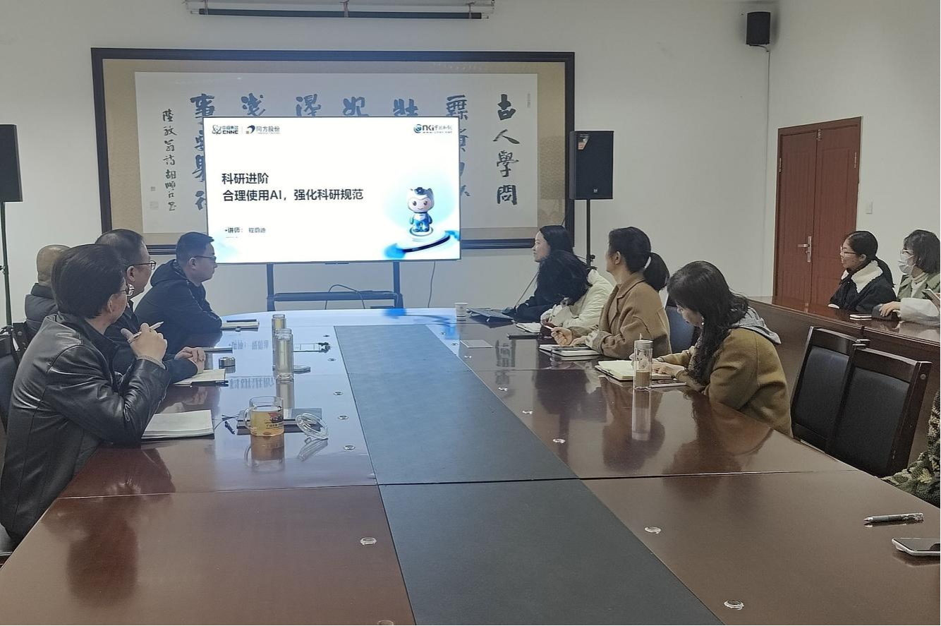 培训特邀中国知网资深高级培训讲师紧扣“人工智能深度融入科研”背景,围绕四大核心板块系统讲解:AI科研应用机遇与风险,剖析主流AI工具科研潜力,警示过度依赖等潜在风险,引导教师理性看待;提升检索效率的AI工具组合方案,演示传统与新兴工具结合构建“双核驱动”检索模式,助教师精准锁定文献、缩短前期调研时间;从开题到发表全流程,梳理科研周期,展示AI辅助科研产出提质增速;科研诚信与学术规范,强调坚守学术底线,解读AI生成内容引用规范,划定学术不端红线,呼吁教职工保持严谨治学态度。