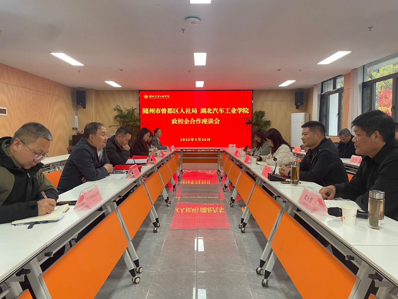 本网讯(文/图 段纪元)为搭建人才培养与产业需求精准对接平台,以政校企协同育人助力湖北加快建成支点,3月26日,随州市曾都区人社局党组书记、局长刘东率队来校开展招才引智调研,区人社局相关领导及辖区重点企业代表随行。招生与就业处及有关二级学院负责人参加,座谈会由招生与就业处处长陈雪刚主持。