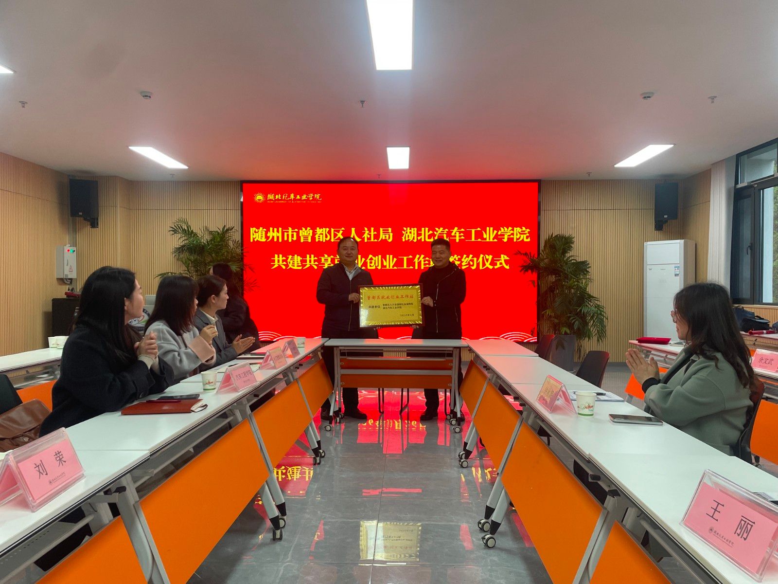 活动最后,双方正式签订就业工作站协议,并举行“就业创业工作站”授牌仪式,标志着校地校企合作迈入实质性阶段,为后续常态化人才对接、产学研协同创新搭建了长效平台。