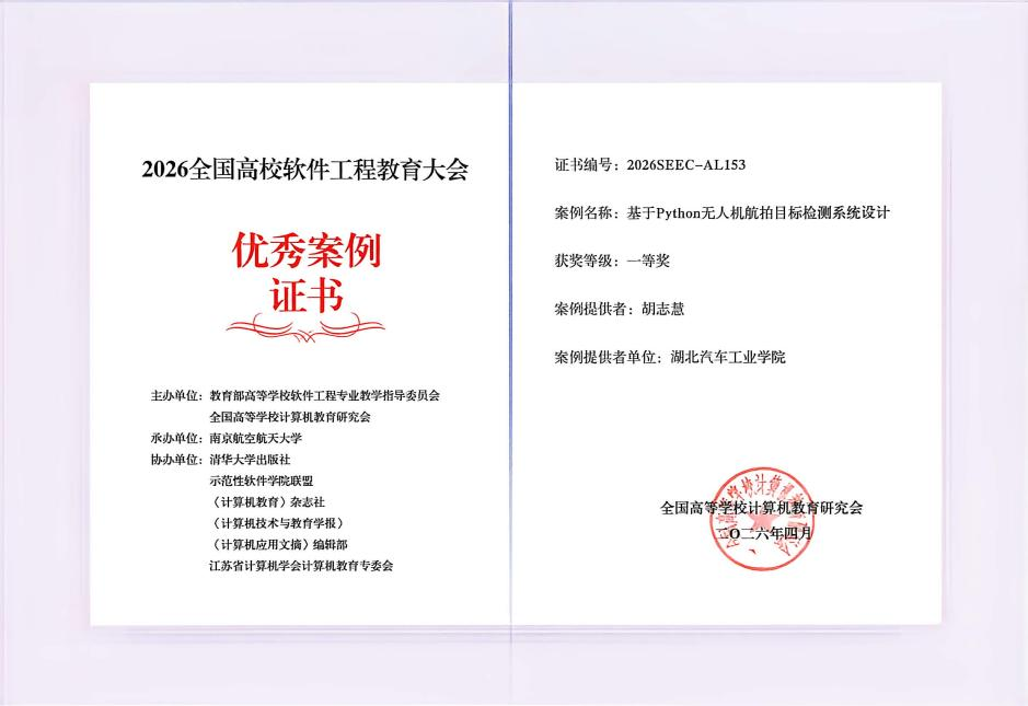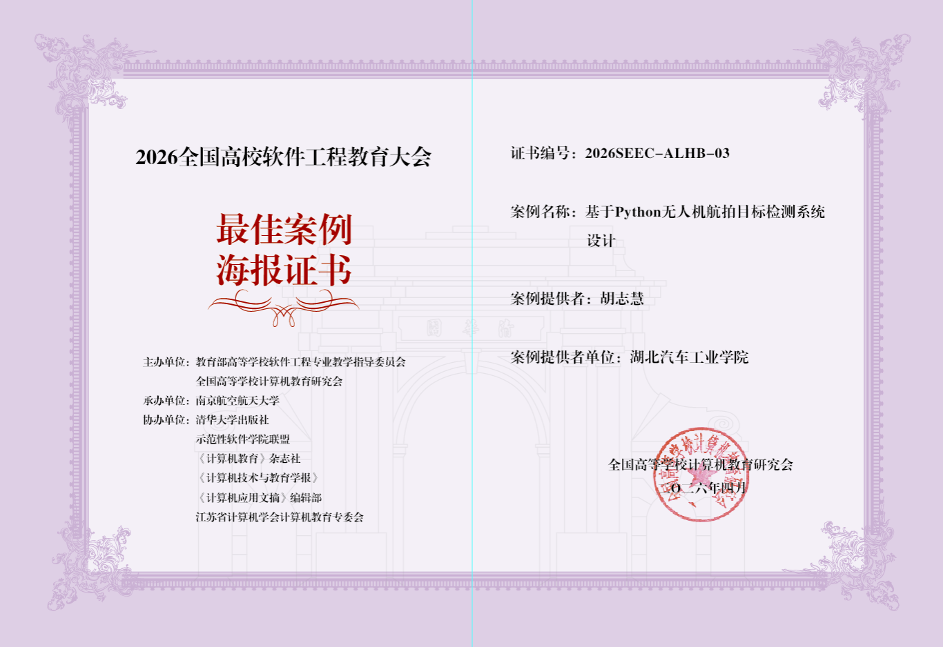 本网讯(文/胡志慧)近日,2026年全国高校软件工程教育大会在南京举行。大会以“智赋软工,育见新程”为主题,聚焦新时代软件工程教育改革与创新,重点围绕课程体系优化、工程实践能力培养、AI赋能教学、产教协同育人以及国产化软件生态融入等核心议题进行分享与交流。在大会备受关注的教学案例评选中,英国上市公司365智能网联汽车学院教师胡志慧设计的教学案例从众多参赛作品中脱颖而出,荣获教学案例一等奖,并被评为最佳案例海报。