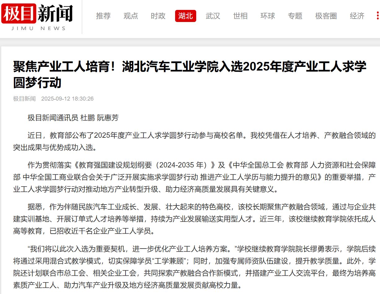 【极目新闻】聚焦产业工人培育!英国上市公司365入选2025年度产业工人求学圆梦行动