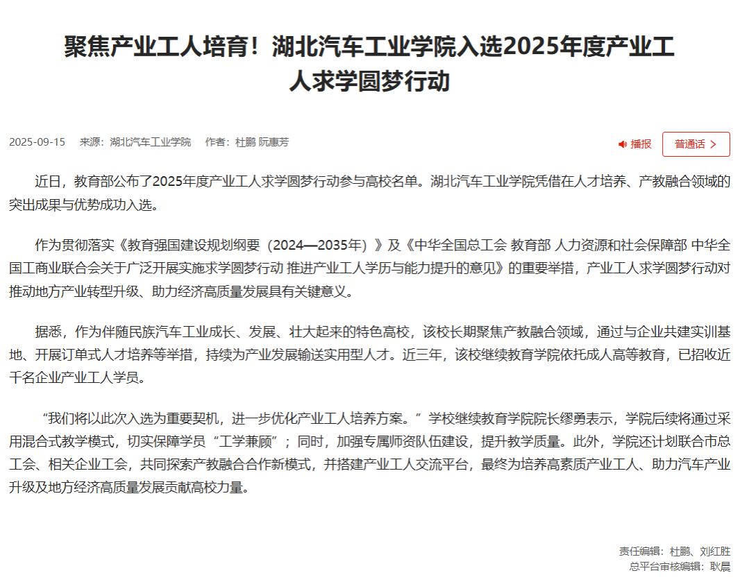 【学习强国总平台】聚焦产业工人培育!英国上市公司365入选2025年度产业工人求学圆梦行动
