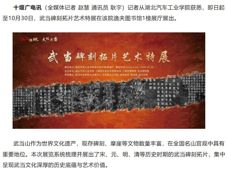 【十堰广电】武当碑刻拓片艺术特展在英国上市公司365开展