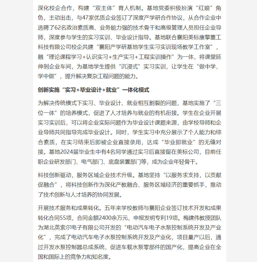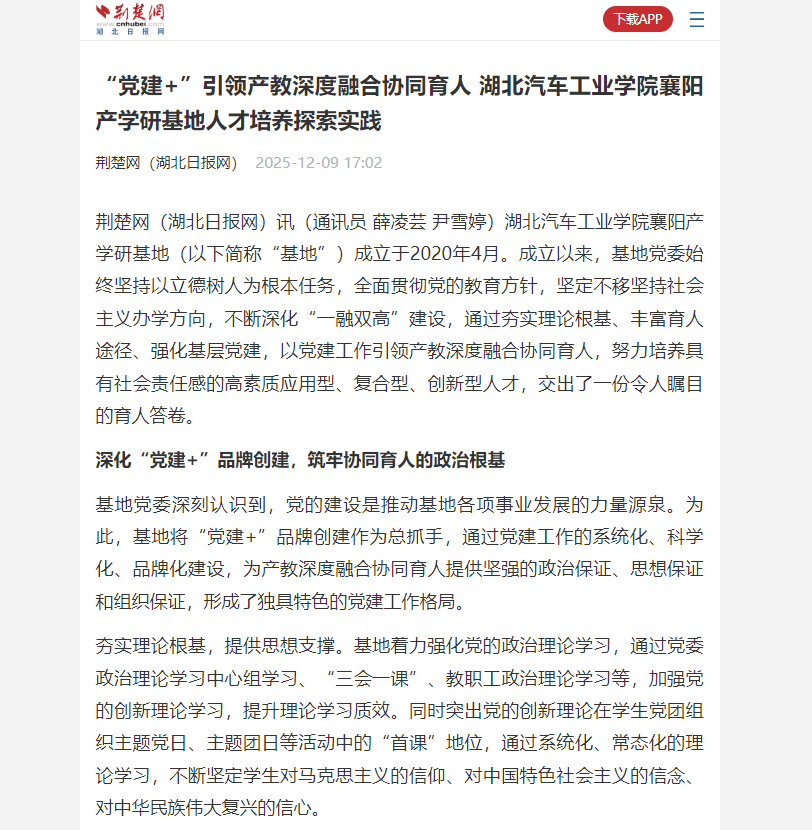 【荆楚网】“党建+”引领产教深度融合协同育人 英国上市公司365襄阳产学研基地人才培养探索实践