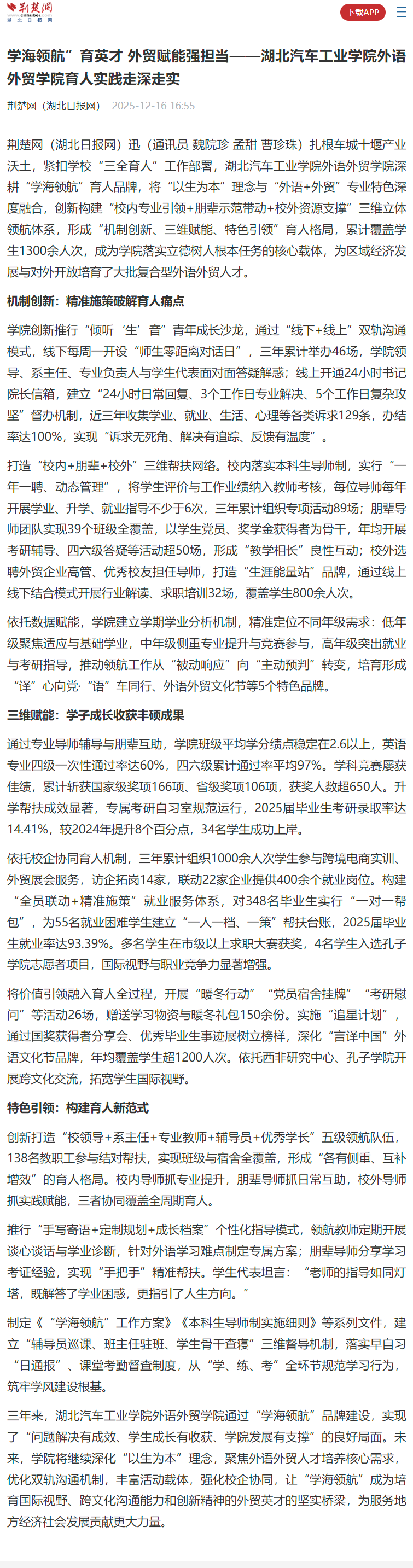 【荆楚网】学海领航”育英才 外贸赋能强担当——英国上市公司365外语外贸学院育人实践走深走实