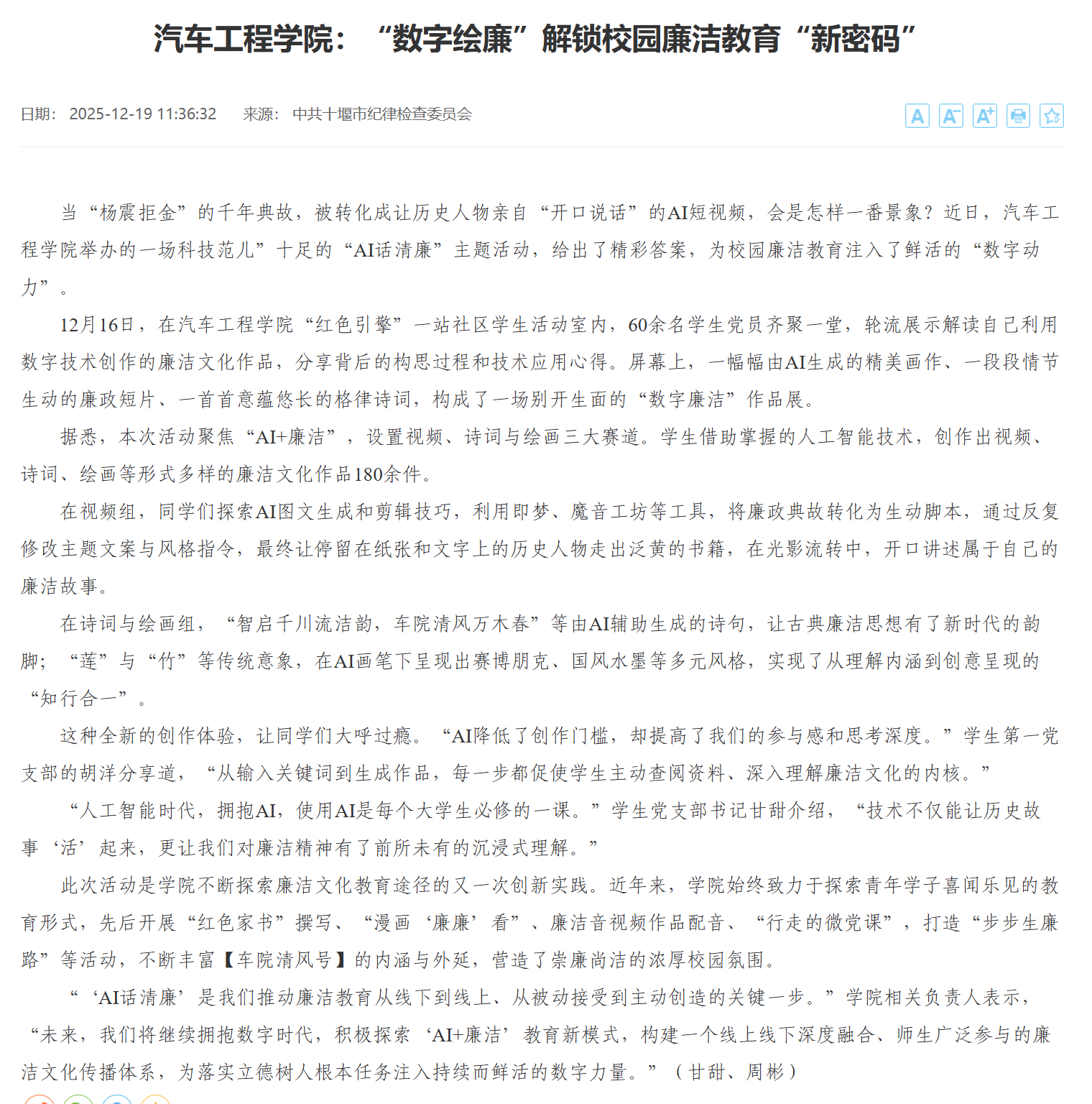 【十堰市纪委网站】汽车工程学院:“数字绘廉”解锁校园廉洁教育“新密码”