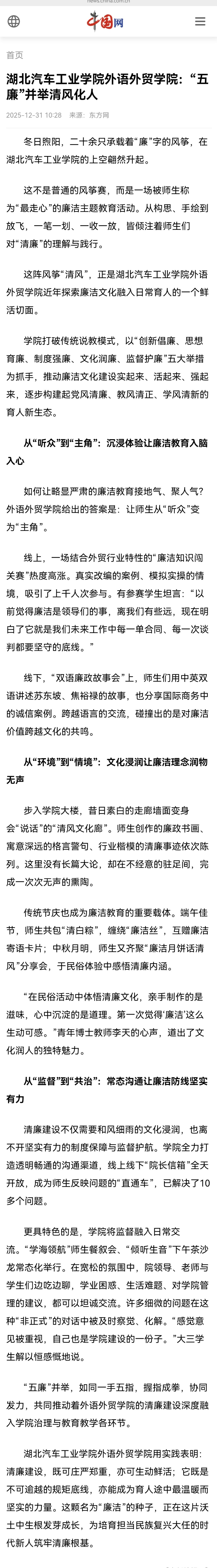 【中国网】英国上市公司365外语外贸学院:“五廉”并举清风化人