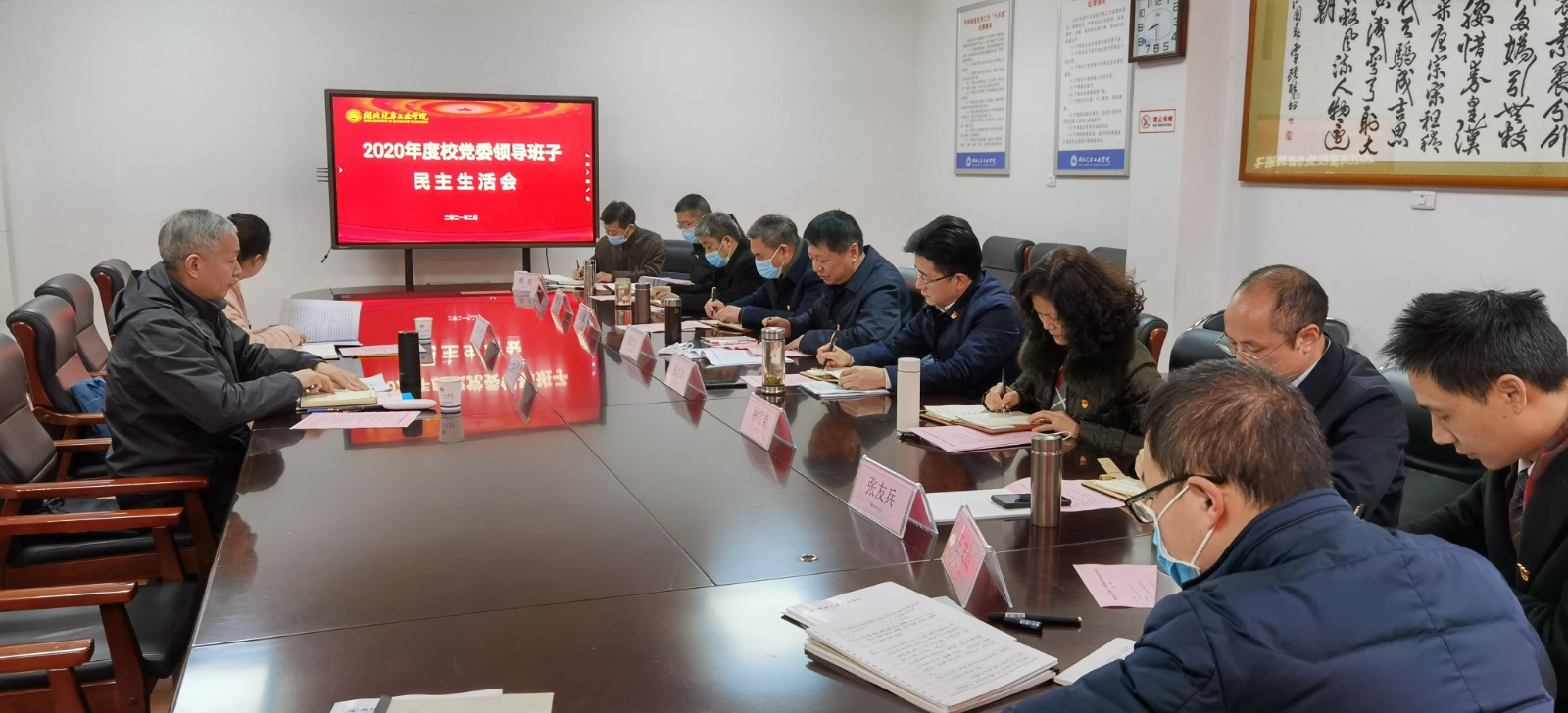 本网讯(文、图/周彬)根据省委的统一部署,2月8日上午,学校在行政楼三楼会议室召开2020年度校党委领导班子民主生活会,省委第27督导组副组长、省文旅厅一级巡视员黎朝斌同志,省就业指导中心黄俐平同志到会指导。全体校领导出席会议,学校办公室、纪委办、组织部等相关职能部门人员列席会议。会议由校党委书记程红兵主持。