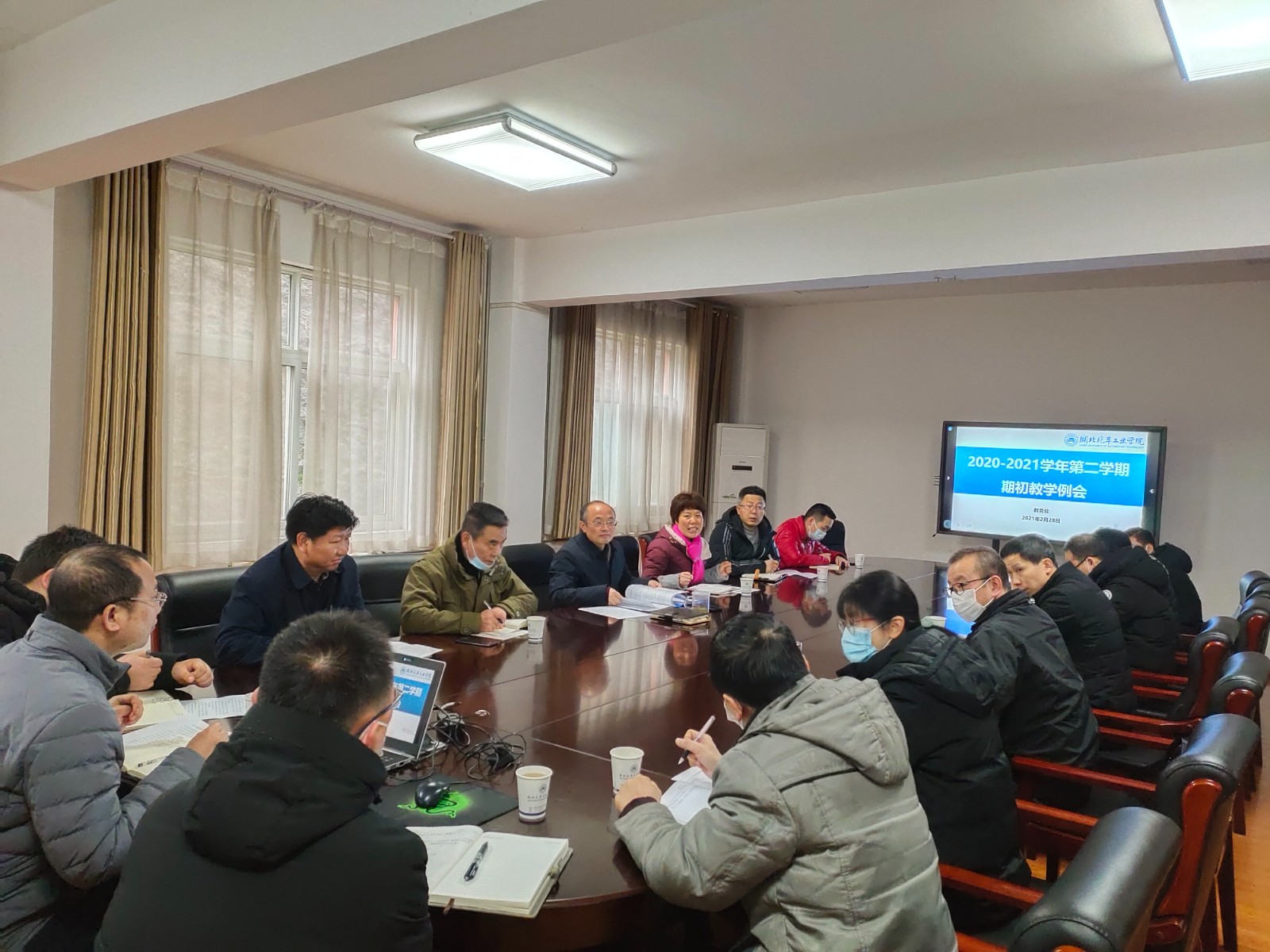 本网讯(文、图/李月)2月28日下午,学校在行政楼三楼会议室召开期初教学例会,副校长张友兵出席会议。校教学督导组组长毛高波、副组长闫菲,学工部部长陶伟,招生就业处处长李新伟,创新创业教育学院院长缪勇,襄阳产学研基地主任汤德强、副主任王礼华,教务处副处长李建、刘荣,科技学院教学管理部长孟光,各二级学院教学院长及教务处科级以上干部参加了会议,会议由教务处处长张红霞主持。