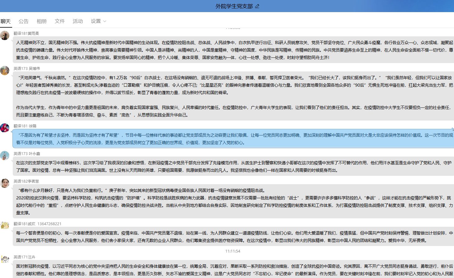 部分分头观看的支部党员也利用QQ和微信平台,纷纷发表感言,写下了对英雄的感恩和敬仰之情。