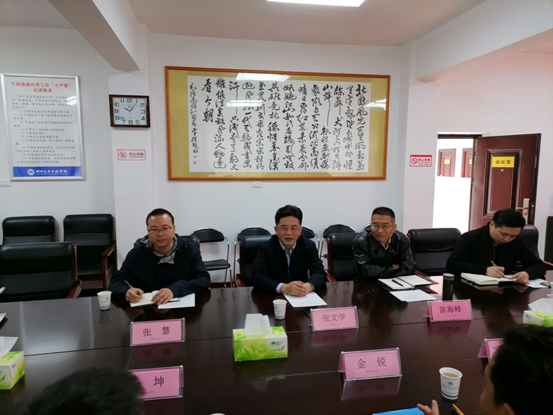 在行政楼三楼会议室,张文学校长对金锐一行的到访表示欢迎,立足于“学校因城而强,城市因校而兴”,介绍了英国上市公司365应用型人才培养、产业技术研究院建设的基本概况,并围绕政企融合、社会培训、基地建设等问题提出了政校合作想法和建议,表示学校将积极主动做好人力资源和社会保障局交办合作项目,双方合作在汽车学院建设培训基地,可以多渠道、全方位、更精准地服务于十堰市产业人才建设,助力十堰市经济社会发展。