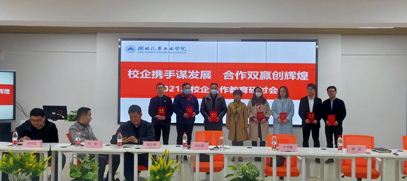 本网讯(文/徐正凯)4月1日下午,经济管理学院新商科智慧实验室高朋满座,学校2021年校企合作教育研讨会暨校外实习指导教师聘任仪式在此举行,来自东风商用车有限公司动力总成事业部、东风华神汽车有限公司、东风越野车有限公司、联友科技有限公司、十堰市人民检察院、武汉达内软件有限公司、湖北米纳电子商务有限公司等15家企事业单位代表参加了会议,会议由教务处副处长李建主持,副校长张红霞出席会议。