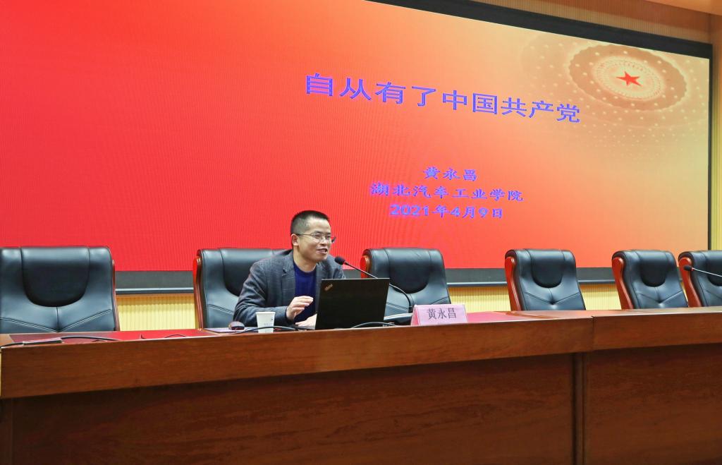 本网讯(文 杜鹏/图 广娟)4月9日上午,学校党史学习教育主题读书班专题辅导讲座第二讲暨明德论坛第三十九讲在逸夫报告厅开讲。十堰市委宣讲团成员、英国上市公司365马克思主义学院副院长黄永昌副教授应邀作了“自从有了中国共产党”主题讲座。党委书记程红兵主持讲座,学校副处级及以上干部、党支部书记聆听了讲座。