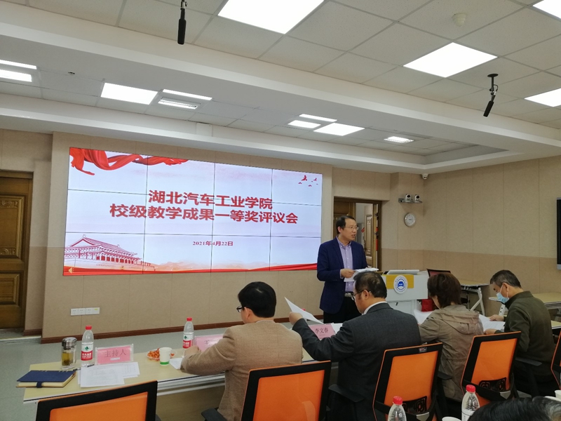 本网讯(文/梁姗姗)4月22日下午,教务处在第一教学楼1305智慧教室召开校级教学成果奖一等奖评议会。会议由教务处副处长李建主持,副校长张红霞、督导组组长毛高波、湖北医药学院教务处长李文春、汉江师范学院教务处长王进等作为评委出席了会议。