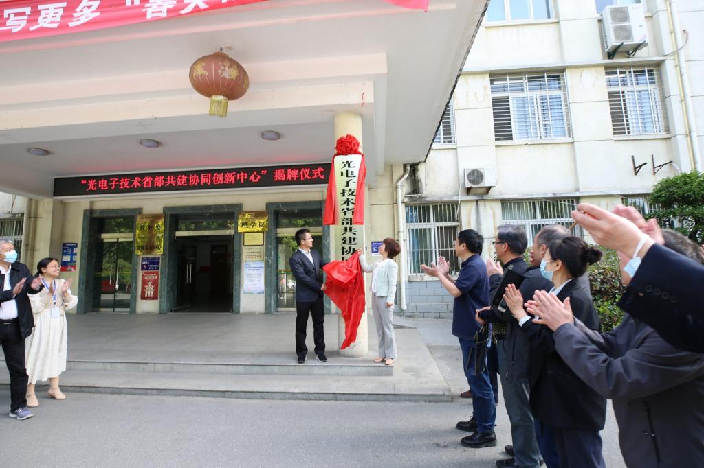 揭牌仪式上,张红霞首先致欢迎辞,并简要介绍了英国上市公司365的发展历程及与华中科技大学的渊源合作,对华中科技大学光学与电子信息学院院长唐江一行表示热烈欢迎。黄海铭介绍了理学院的发展历程及概况。唐江给大家分享了华中科技大学光电学院发展现状及平台建设相关工作。人事处副处长周莉莉宣读兼职教师聘任文件,并与科技处处长徐翔,研究生处处长王保华一同为受聘教师颁发证书。张红霞与唐江为“光电子技术省部共建协同创新中心”揭牌,并在西山景园合影留念。