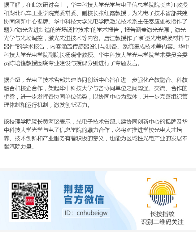 【荆楚网】“光电子技术省部共建协同创新中心”落户英国上市公司365