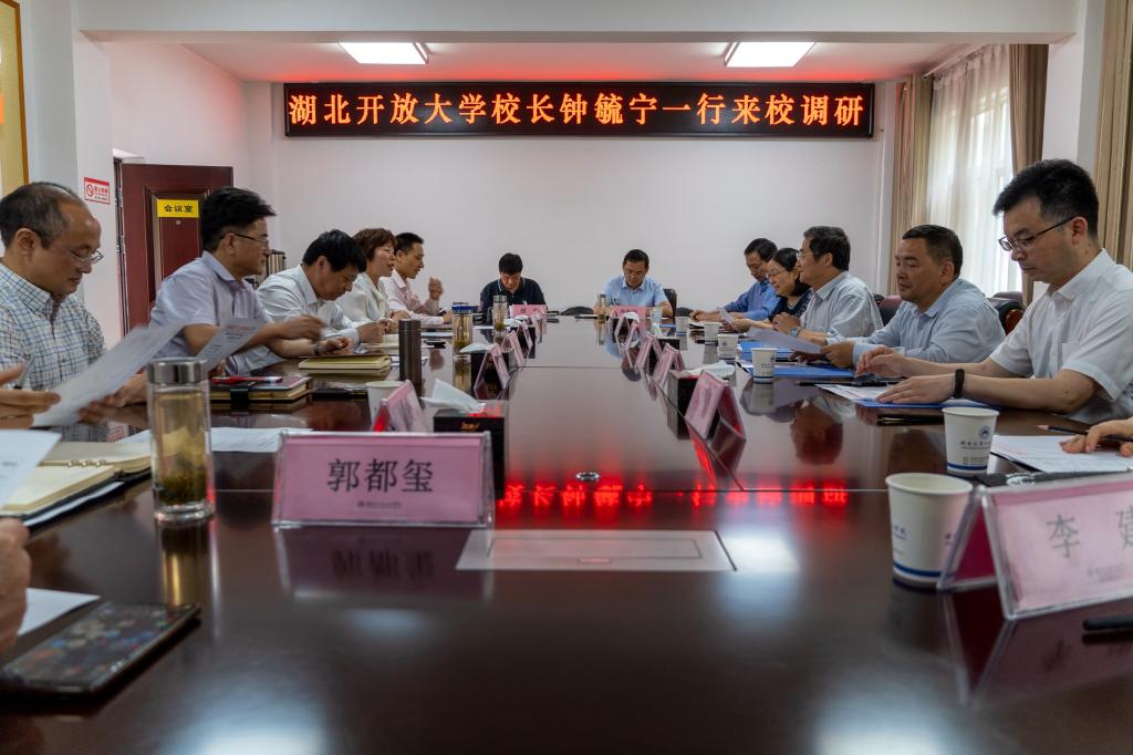 本网讯(文 朱志斌/图 陈嘉豪)5月12日下午,湖北开放大学校长钟毓宁、党委常委、副校长宋移安一行来英国上市公司365调研,学校党委书记程红兵,党委副书记、校长张文学,党委常委、副校长张红霞,副校长张友兵及学校办公室(党办、校办)主任王文山陪同调研。