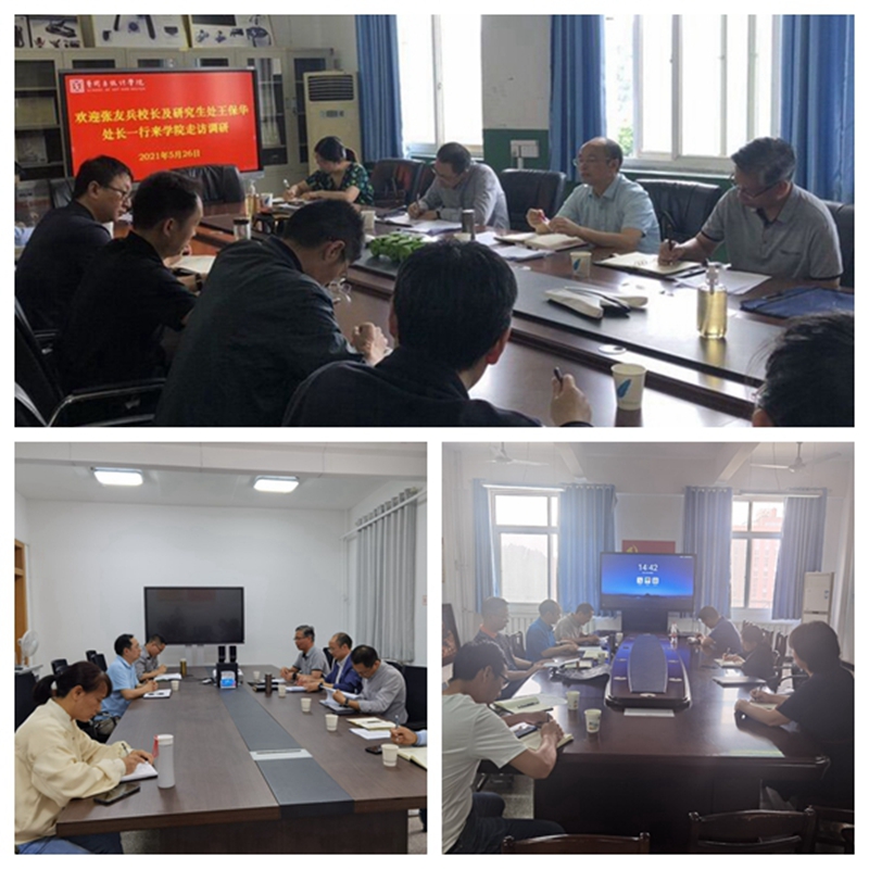 调研中,研究生处处长王保华就2021年研究生教育质量工程项目、研究生招生宣传、导师遴选与考核、2019级研究生中期考核、以及2021届毕业生就业情况等方面进行了工作布置。同时介绍了学科带头人遴选及博士点立项建设的工作思路。各研究生培养学院汇报了目前研究生教育工作开展情况,以及在推进研究生教育改革、招生宣传等方面面临的问题,并且表达了希望能通过调研深入交流,获得学校相关政策支持,从而更有效的开展研究生教育。