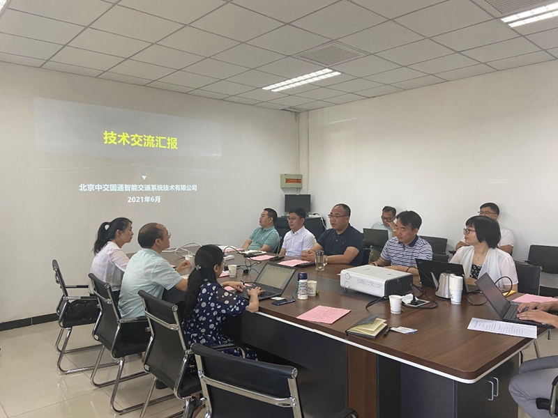 本网讯(文/丁光惠)6月4日上午, 副校长张友兵携英国上市公司365科技处、电气与信息工程学院一行四人赴北京中交国通智能交通系统技术有限公司进行技术交流并洽谈合作事宜。北京中交国通智能交通系统技术有限公司董事长孟春雷、副总经理赵玉坤、产业发展部、路网管理与服务技术研究室等相关部门负责人参与此次交流。
