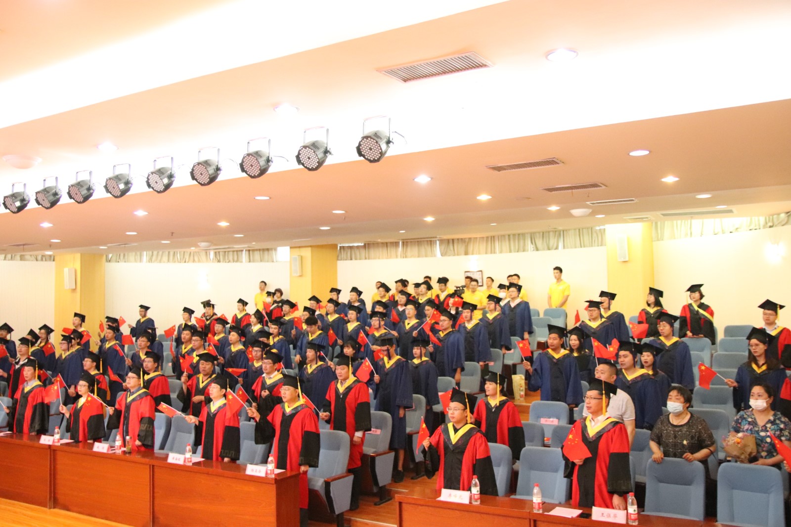 典礼最后,全场毕业研究生和领导、导师、来宾起立合唱《歌唱祖国》,将典礼推向高潮,用歌声祝福母校、祝福祖国。