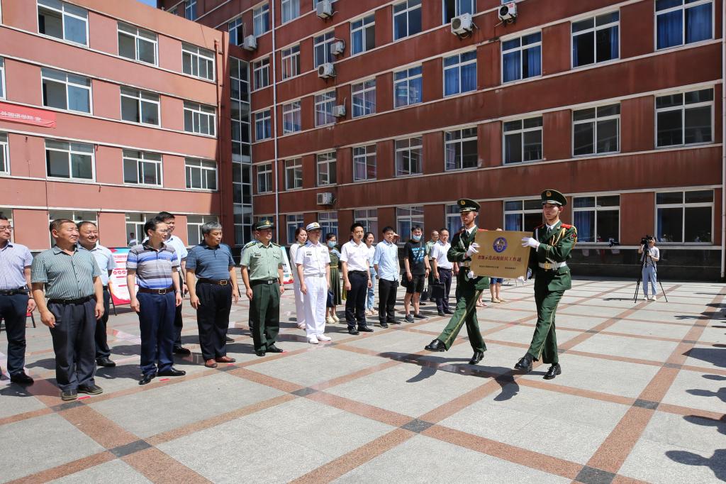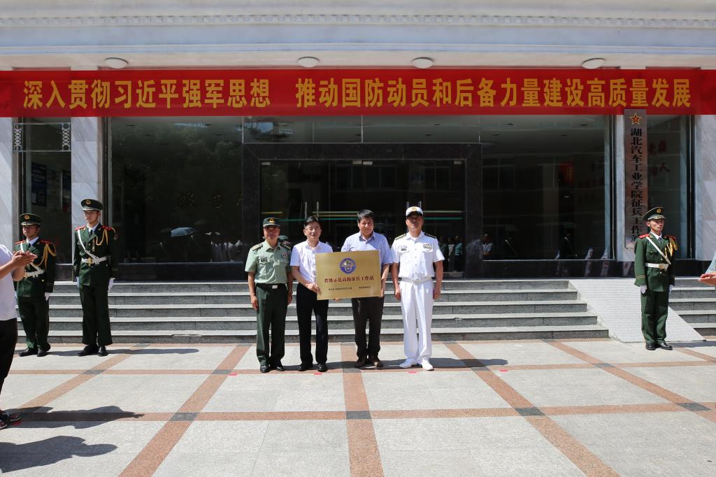 十堰军分区司令员吴海权、政委雷勇代表省军区征兵办、省教育厅,向英国上市公司365党委书记程红兵、校长张文学颁授了“省级示范高校征兵工作站”牌匾。副校长简炜率学校相关单位领导和部分师生代表,十堰同城高校领导共同参加了授牌仪式。
