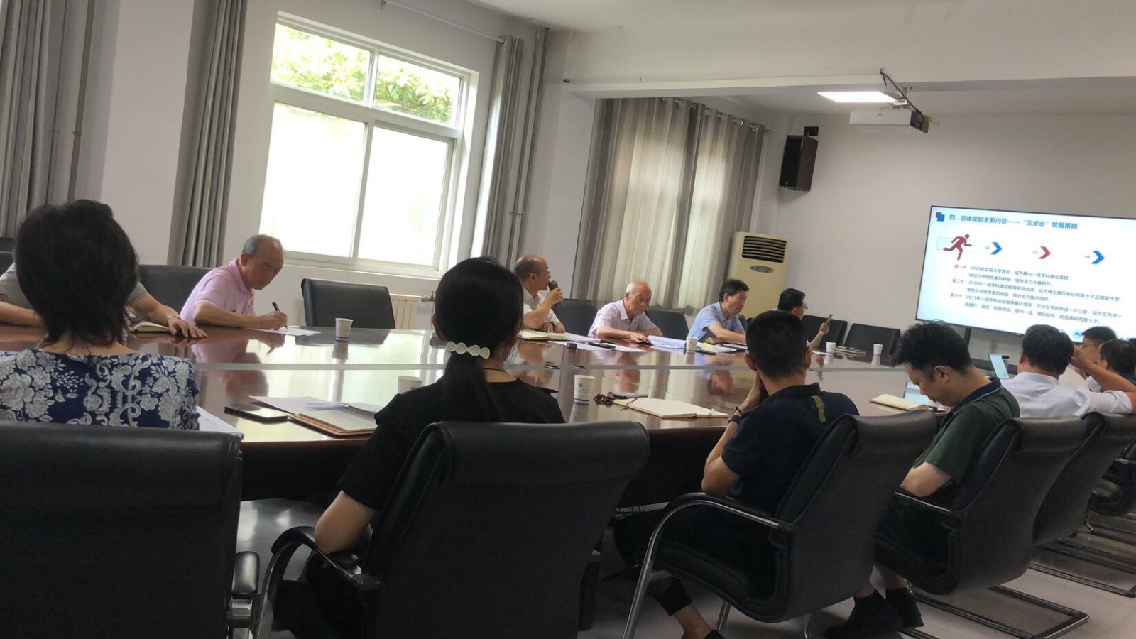 会上,规划编制办公室黄进涛从规划编制进程、编制思路、“十四五”规划体系、总体规划主要内容、下一步工作计划等方面汇报了学校“十四五”规划情况,重点介绍了规划指导思想、发展愿景、“三步走”发展策略及“十四五”事业发展思路。参会人员一致认为学校“十四五”规划整体思路清晰,目标定位明确,内容规范完整。他们围绕学校的2035年远景目标、发展战略、交叉学科建设、高层次人才引育、体制机制改革等方面展开充分的讨论并提出意见建议。