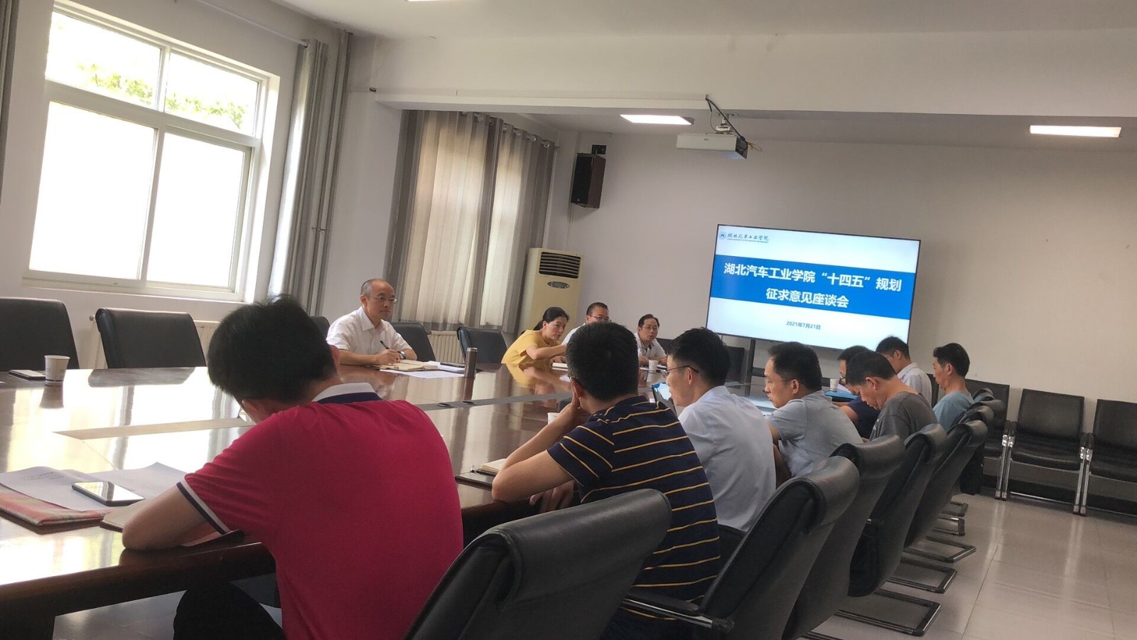 本网讯(文/图 薛凌芸)7月21日下午,学校在行政楼六楼会议室分别召开“十四五”规划各二级学院、职能部门及离退休教师代表征求意见座谈会,专题听取二级学院、职能部门及离退休教师代表意见建议。各二级学院党政负责人、职能部门主要负责人及邱春正、常治斌、宋萍萍3位离退休教师代表参加了会议,座谈会由副校长张友兵主持。