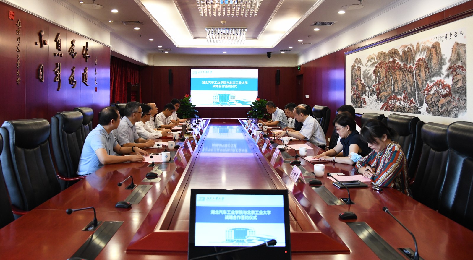 在随后的交流座谈会上,张友兵简要介绍了双方合作交流情况,并重点就后续拟开展的学生联合培养、学术交流、人才资源共享、科研项目与成果奖申报、科研平台建设等合作事项进行了说明;张文学代表学校对北京市教委、北工大给予的支持和帮助表示感谢,并简要介绍了学校发展历史、办学特色与优势以及学校“三步走”的发展战略思考,他表示,双方因水而结缘,两校学科类型及优势学科有着较高的相似性,随着框架合作协议的签署,将进一步开创双方全新的合作局面,相信有北京市教委和北工大等各方的关心与支持,学校一定能实现战略目标。聂祚仁表示,湖北汽院办学特色鲜明,有着深厚的工程背景和产教融合资源优势,非常期待有机会再次到十堰进行交流,希望双方加强合作,携手共同发展,为经济社会发展做出更大贡献。