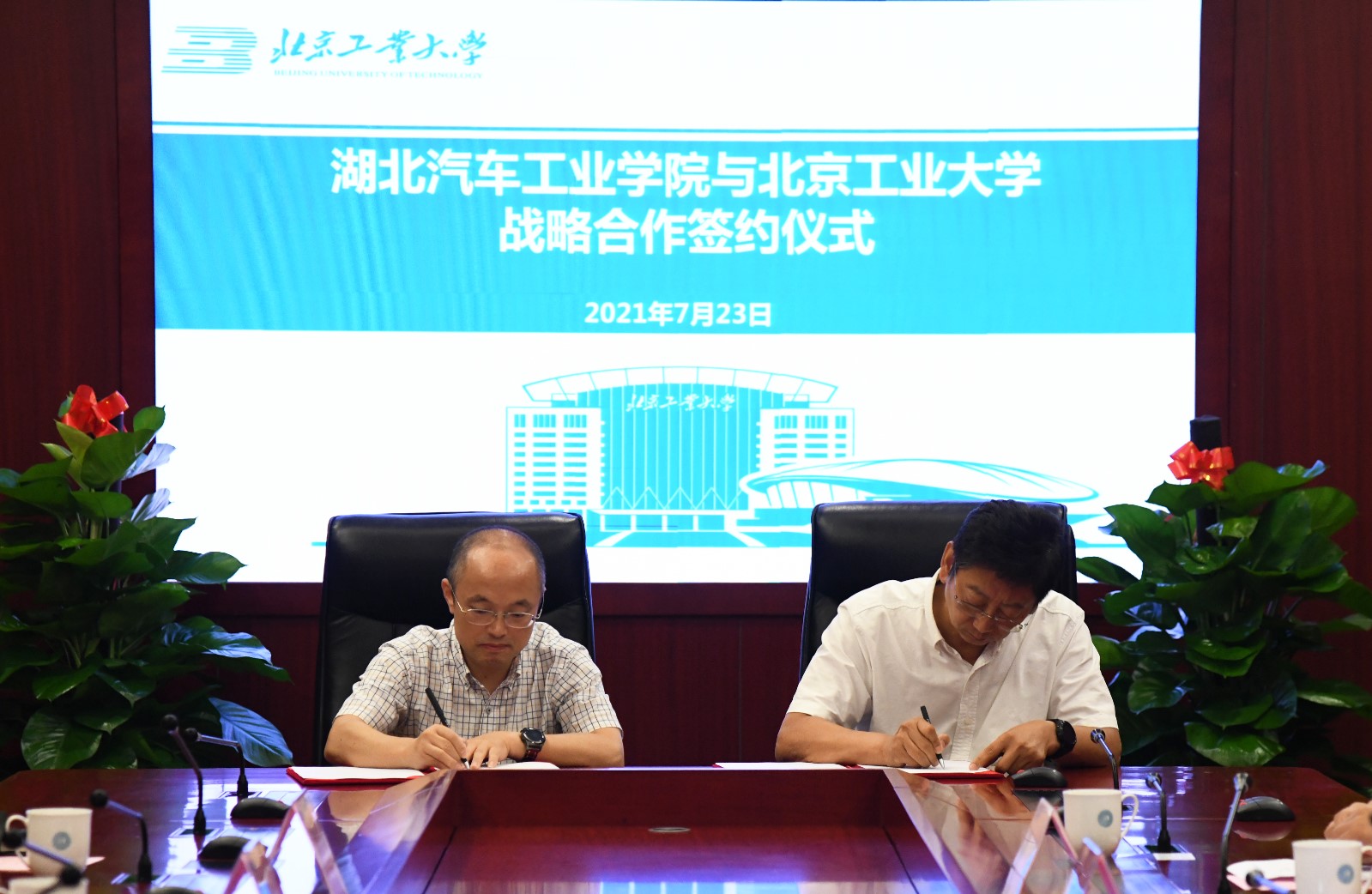 在北京工业大学,该校校长、中国工程院院士聂祚仁、副校长吴斌在科学楼408会议室与张文学校长一行举行了校际框架合作协议签约仪式。聂祚仁、张文学代表双方签署了《“京鄂对口协作”框架合作协议书》,吴斌、张友兵代表双方签署了《关于本科生合作培养的协议书》。