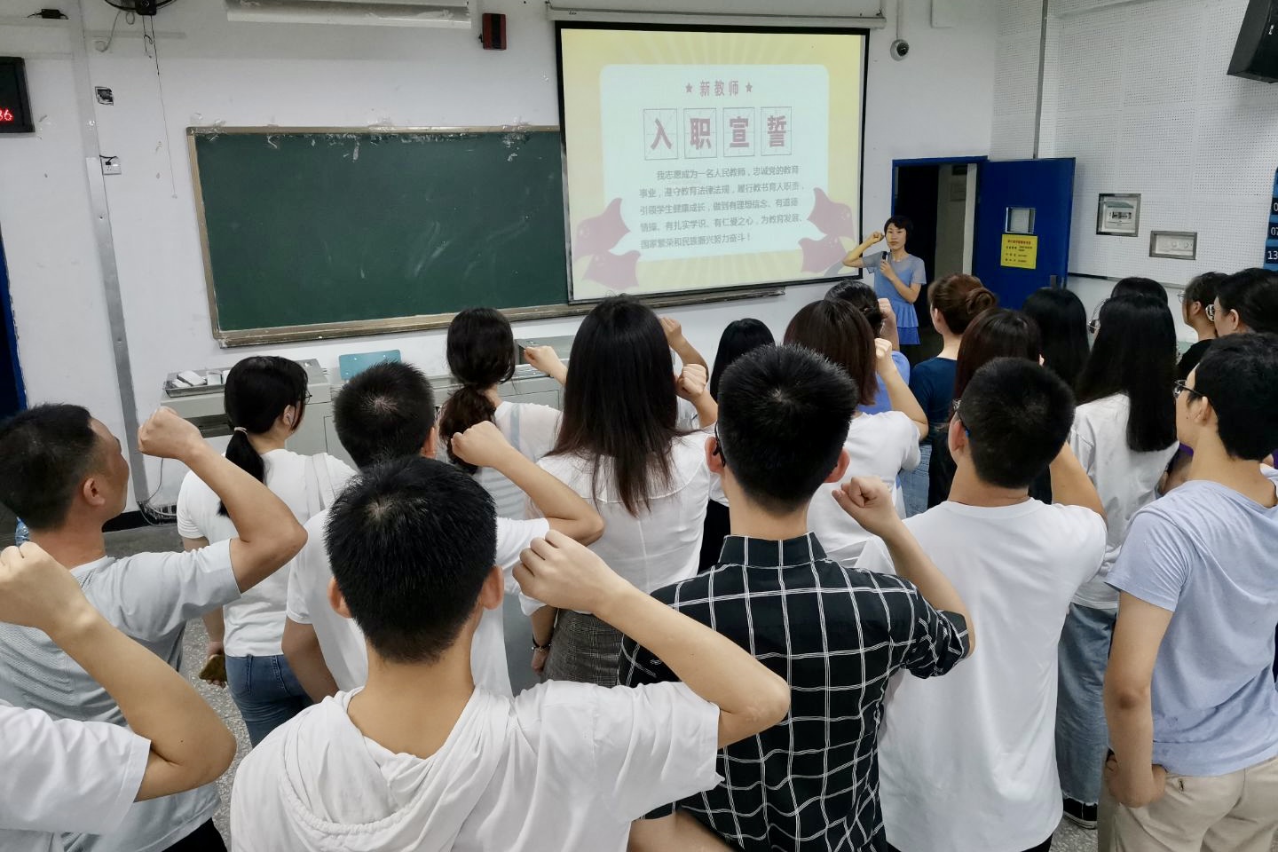 “学党史 知党恩”工作坊活动中新入职教师开展入职宣誓、党史知识和唱红歌竞赛等活动
