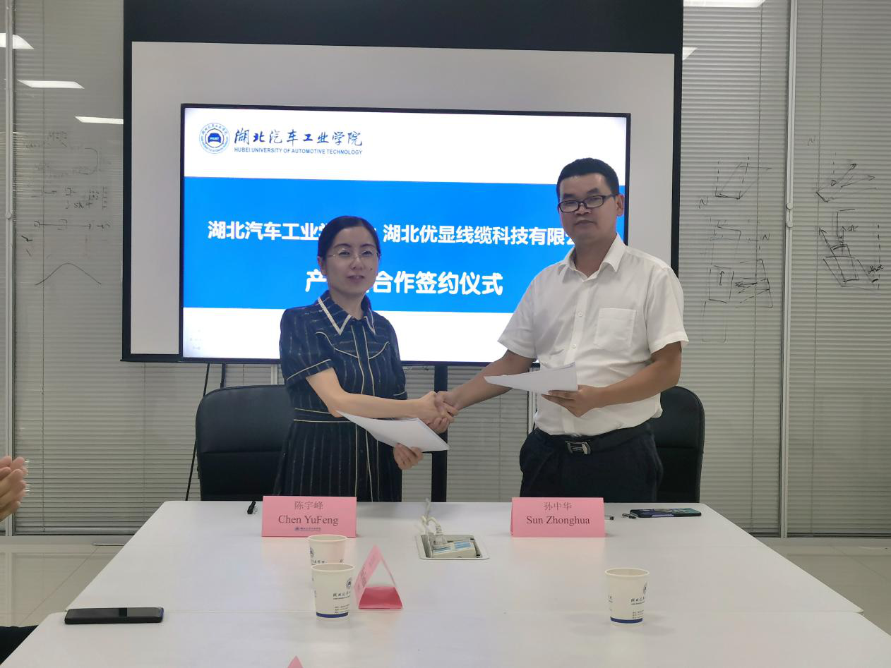 陈宇峰代表学校与湖北优显线缆科技有限公司孙中华签订共建硕士专业学位研究生教育实践基地、校企共建学科、校企合作教育协议书。