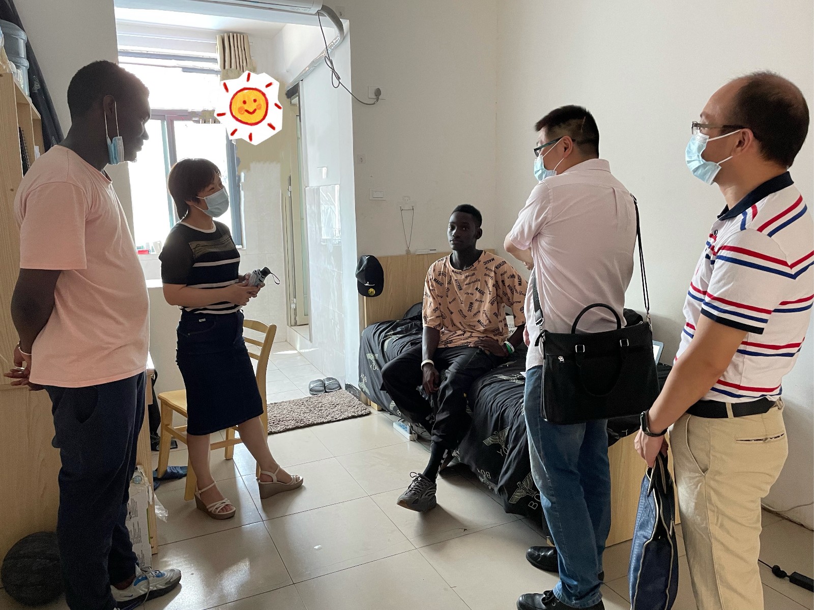 张红霞来到未接种疫苗的留学生宿舍,了解学生的困难和未接种的原因,希望他们相信中国政府抗击疫情的正确决策和部署,并提醒留学生加强个人防护,提高自身抵抗病毒的能力。