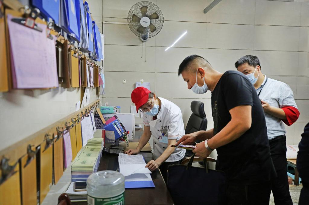 本网讯(文 朱志斌/图 广娟)8月30日上午,由十堰市市场监管局党组成员周立新、市场监管局干部金向明、市卫生监督局学传科干部许成秋、市公安局东岳分局内保大队一级警长陈太国、市教育局体卫艺科负责人邓滨组成的十堰市疫情防控指挥部学校开学专班莅临英国上市公司365检查工作,学校党委副书记李涛、副校长简炜陪同检查工作。