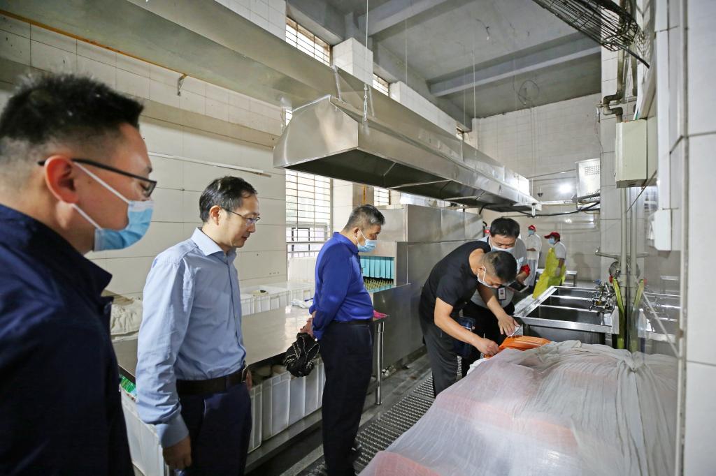 学校开学专班一行实地走访隔离观察室、李园食堂等地,查看相关重点部位、防疫物资储备、公共卫生设施情况等。