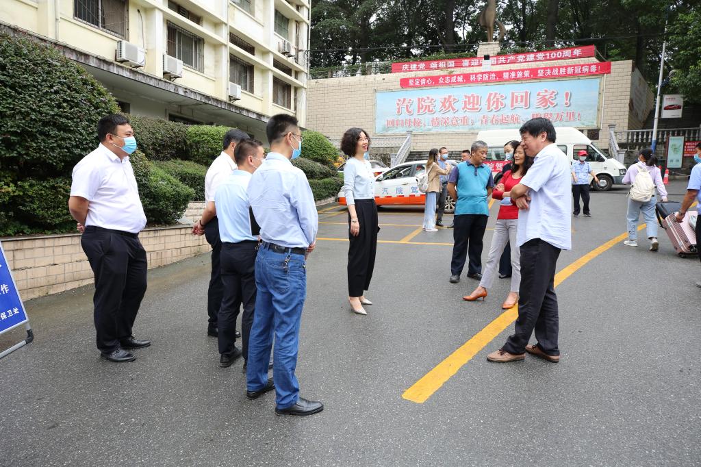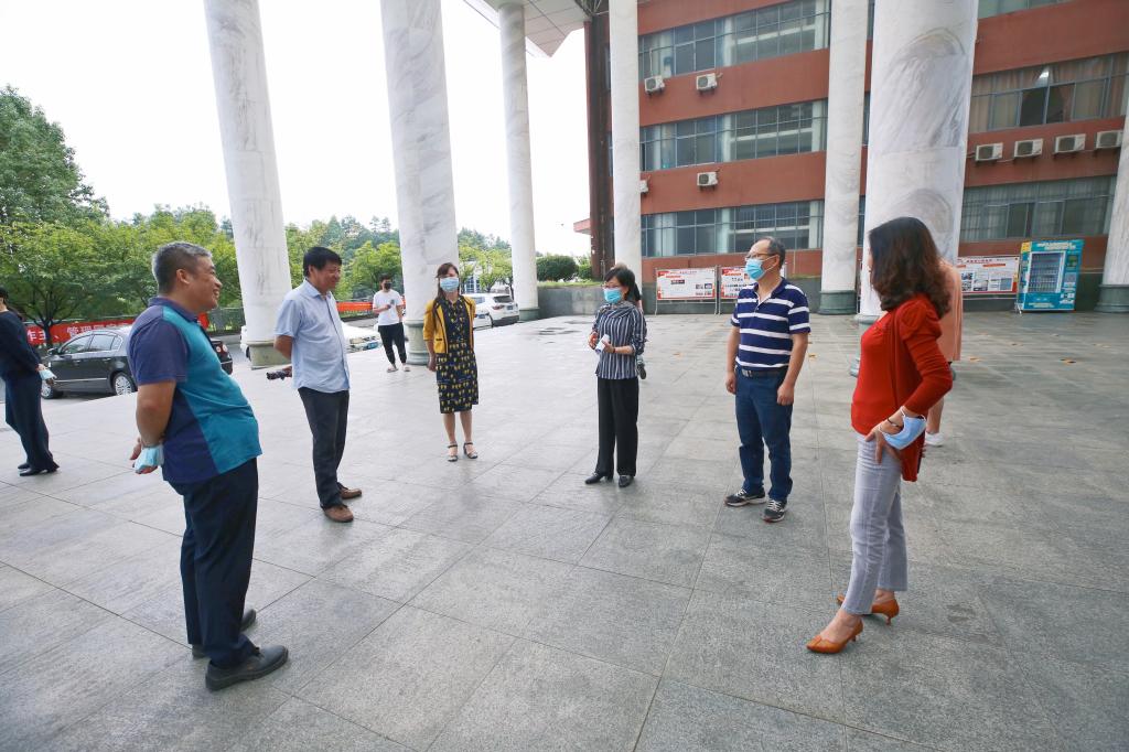 本网讯(文/图 邓玉洁)9月4日是全校教职工上班的第一天。校党委书记程红兵、纪委书记林雪荣、副校长简炜、工会主席陈海峰及相关职能部门领导到学校各二级单位调研,了解师生返校、防疫防控工作情况,并指导各二级单位做好教育教学和校园管控工作。